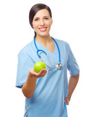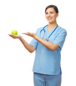 Zdjęcie "młody lekarz z jabłkiem" może być wykorzystywane do celów osobistych i komercyjnych zgodnie z warunkami zakupionej licencji Royalty-free. Obraz jest dostępny do pobrania w jakości wysokiej rozdzielczości do 5760x3840.