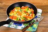 Warzywa gotowane na parze ziemniaki, marchew, kukurydza, fasolka szparagowa, cebula