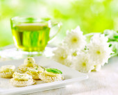 Magenta hibiscus tea (karkade, red sorrel) on kitchen table