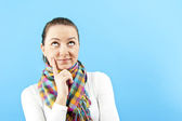 Zdjęcie "Młoda kobieta patrzy w górę na niebieskim tle" może być wykorzystywane do celów osobistych i komercyjnych zgodnie z warunkami zakupionej licencji Royalty-free. Obraz jest dostępny do pobrania w jakości wysokiej rozdzielczości do 5760x3840.