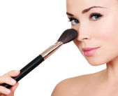 bardzo młoda kobieta z pędzlem makijaż