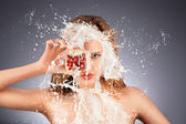 ładna kobieta odświeżanie twarzy