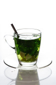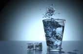 szkło z światło niebieskie wody na tle jako studio sh