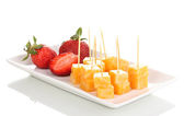 kanapki ser z srawberry na płycie na białym tle