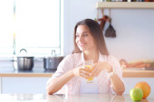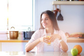 Zdjęcie "Młoda kobieta siedzi przy biurku w kuchni" może być wykorzystywane do celów osobistych i komercyjnych zgodnie z warunkami zakupionej licencji Royalty-free. Obraz jest dostępny do pobrania w jakości wysokiej rozdzielczości do 5760x3840.