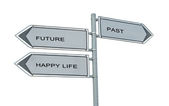 Żółty ulicy koncepcja przyszłości, przeszłości i szczęśliwe życie znak