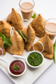 Popularny indyjski głęboko smażone przekąska o nazwie samosa