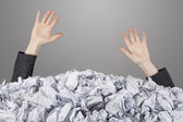 Osoba pod zmięty stos dokumentów z pustą stronę / izolowanie