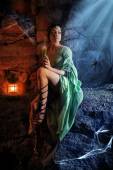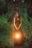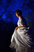 Piękna nimfa w mokrych biała bluzka jest stały w nocy ri