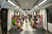 Osoby dojeżdżające do pracy lub pasażerowie wewnątrz stacji Mrt wydaæ ten czas na ich smartphone lub telefon komórkowy.