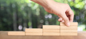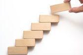 Ręka zorganizowanie drewno blok układania jako krok schodów.