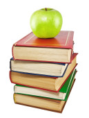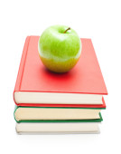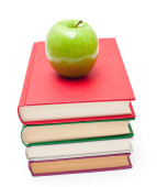 Jabłko na stosie książek