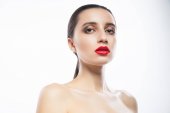 Zdjęcie "Studio Portret młodej pięknej kobiety z makijażu i czerwone usta na czerwonym tle" może być wykorzystywane do celów osobistych i komercyjnych zgodnie z warunkami zakupionej licencji Royalty-free. Obraz jest dostępny do pobrania w jakości wysokiej rozdzielczości do 5760x3840.