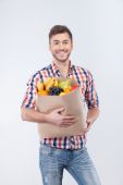 Zdjęcie "Cheerful fit guy prefers to eat vitamins" może być wykorzystywane do celów osobistych i komercyjnych zgodnie z warunkami zakupionej licencji Royalty-free. Obraz jest dostępny do pobrania w jakości wysokiej rozdzielczości do 5760x3840.