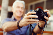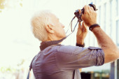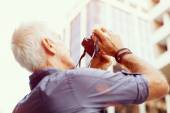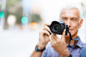 Mężczyzna fotograf biorąc obraz