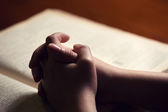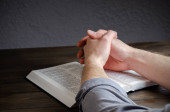 widok z góry obraz mans rękami splecionymi w modlitwie obok Modlitewnik. koncepcja religii, duchowości i wiary