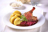 pieczona kaczka z czerwoną kapustą i kluseczkami ziemniaczanymi