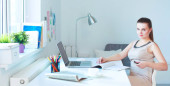 Zdjęcie "Kobieta z dokumentami na biurku i laptopie" może być wykorzystywane do celów osobistych i komercyjnych zgodnie z warunkami zakupionej licencji Royalty-free. Obraz jest dostępny do pobrania w jakości wysokiej rozdzielczości do 5760x3840.