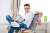 Zdjęcie "młody człowiek siedzący na krześle" może być wykorzystywane do celów osobistych i komercyjnych zgodnie z warunkami zakupionej licencji Royalty-free. Obraz jest dostępny do pobrania w jakości wysokiej rozdzielczości do 5760x3840.