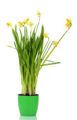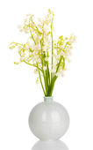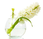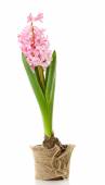 piękny biały Hiacynt w niebieska doniczka na białym tle