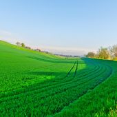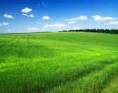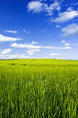 pole zielone ziarna świeże i piękne niebieskie niebo