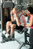 fitness centrum młoda kobieta ćwiczenia z trenerem