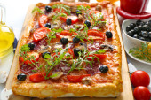 Zdjęcie "Częścią prostokąt pyszną pizzę, na białym tle" może być wykorzystywane do celów osobistych i komercyjnych zgodnie z warunkami zakupionej licencji Royalty-free. Obraz jest dostępny do pobrania w jakości wysokiej rozdzielczości do 5760x3840.