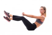 Szczupły fitness młoda kobieta lekkoatletka dziewczyna robi ćwiczenia deski