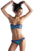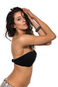 zmysłowy i ładny dziewczynę w strój kąpielowy z obu rąk w pobliżu twarzy