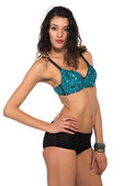 zmysłowy i ładny dziewczynę w strój kąpielowy z obu rąk na biodrach