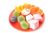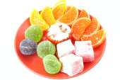 kolorowe Cukierki-pralinki na płytkę na białym tle