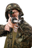 Zdjęcie "uzbrojony mężczyzna wskazując broń" może być wykorzystywane do celów osobistych i komercyjnych zgodnie z warunkami zakupionej licencji Royalty-free. Obraz jest dostępny do pobrania w jakości wysokiej rozdzielczości do 5760x3840.