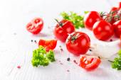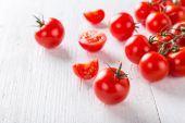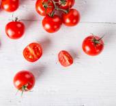 świeże pomidory wiśniowe na drewnianym stole