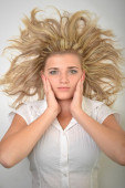 dziewczyna piękny wesoły korzystających na białym tle na białym tle