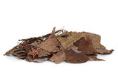 Suszone grzyby borowiki w misce biały na białym tle