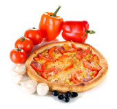 aromatyczna pizza z warzywami i grzybami na białym tle