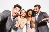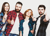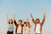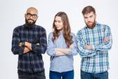 Szczęśliwy trzech przyjaciół w casual noszenia stałego i śmiejąc się