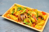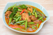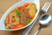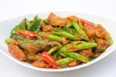 Mieszać smażone wieprzowina brzuch chrupiące i czerwonym curry