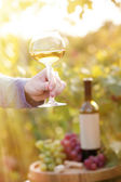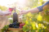 Młoda para zadowolony korzystających szklanki białego wina