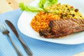 Dania z Turcji mięso z ryżem i surówką liści i szkła o