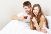 Zdjęcie "piękna para picia herbaty w łóżku" może być wykorzystywane do celów osobistych i komercyjnych zgodnie z warunkami zakupionej licencji Royalty-free. Obraz jest dostępny do pobrania w jakości wysokiej rozdzielczości do 5760x3840.
