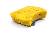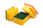 widok z góry Nowa idealna stary dwustronny czyszczenia gąbki na białym tle