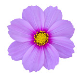 Fioletowy kwiat kosmosu izolowany na białym ze ścieżką wycinania