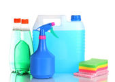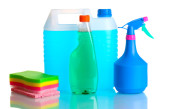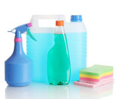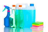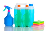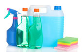kanister z butelki płyn i detergentów na białym tle