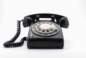 Czarny, stary lub klasyczny telefon, na białym tle na białym tle