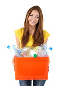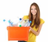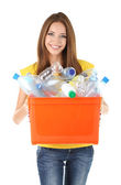 Kobieta trzyma pudełko recykling