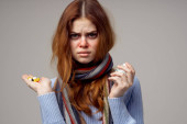 kobieta czuje się chory i z gorączką