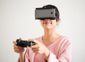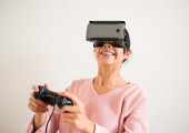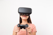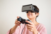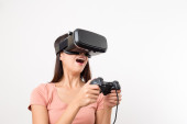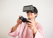 Kobieta z wirtualnej rzeczywistości urządzenia