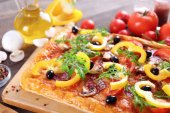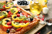 Zdjęcie "Prostokąt pyszną pizzę na stole, szczelnie-do góry" może być wykorzystywane do celów osobistych i komercyjnych zgodnie z warunkami zakupionej licencji Royalty-free. Obraz jest dostępny do pobrania w jakości wysokiej rozdzielczości do 5760x3840.