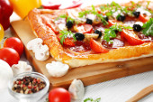 Zdjęcie "Prostokąt pyszne pizze i warzywa na stole" może być wykorzystywane do celów osobistych i komercyjnych zgodnie z warunkami zakupionej licencji Royalty-free. Obraz jest dostępny do pobrania w jakości wysokiej rozdzielczości do 5760x3840.